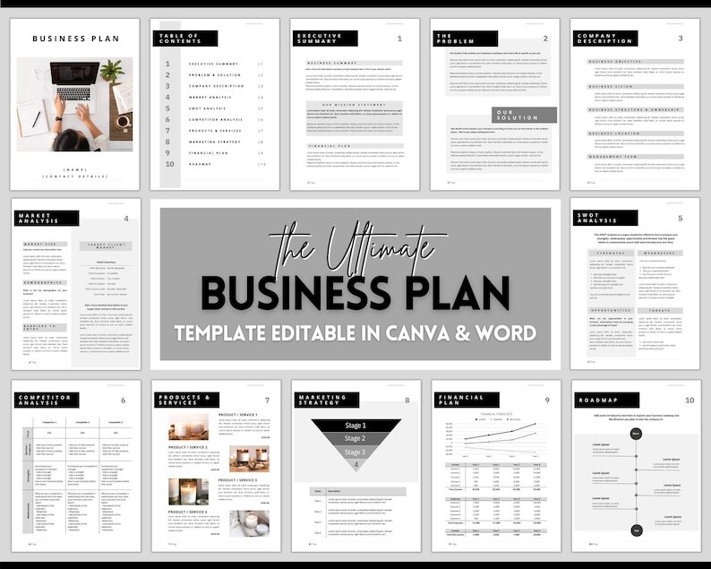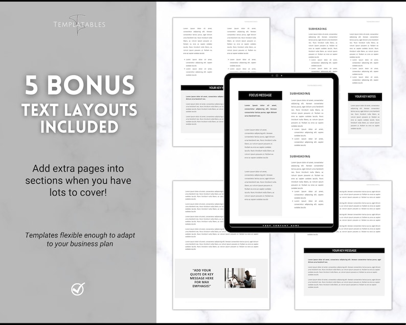 ✔ Bonus text layout pages in case you need to add more content to a particular section of your business plan