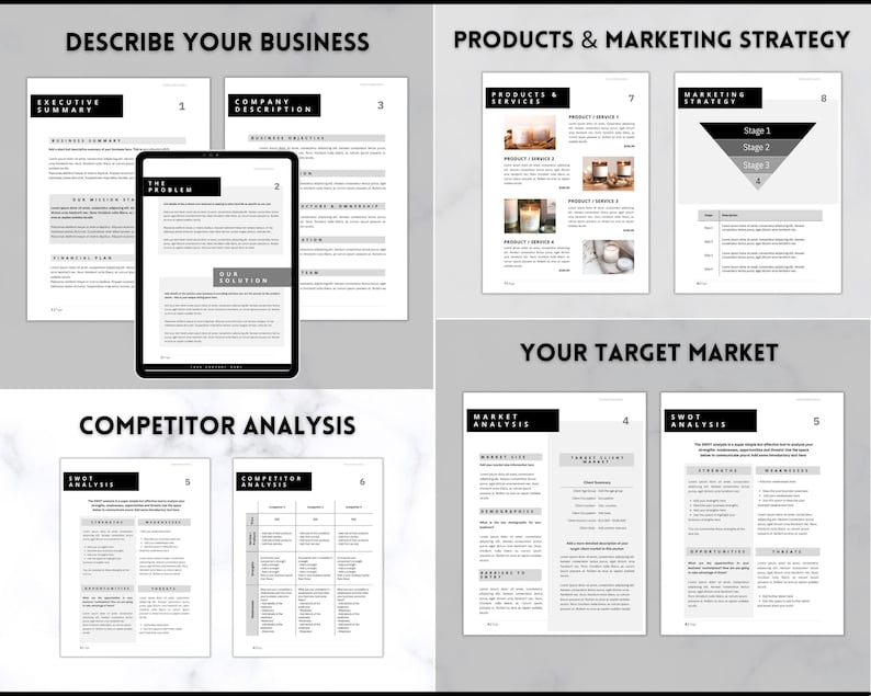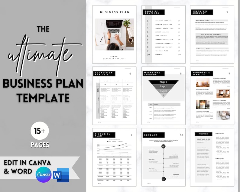 Concentrate on the content and leave the design to the template! This editable bundle of templates has everything you need to put your business plan together in the most efficient way!
